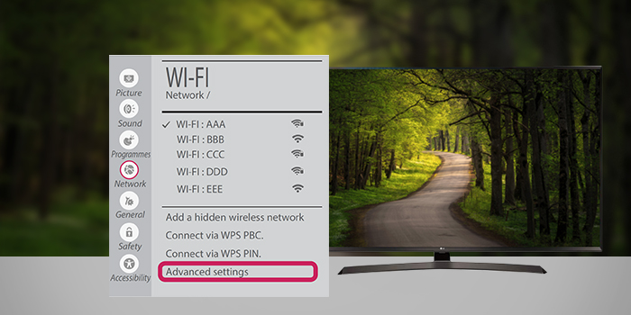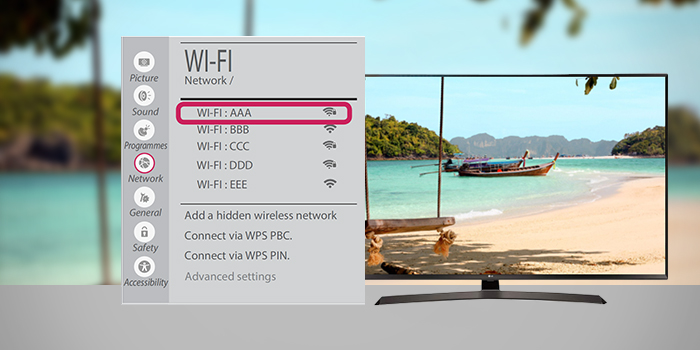 اتصال به وای فای مخفی در تلویزیون LG Webos