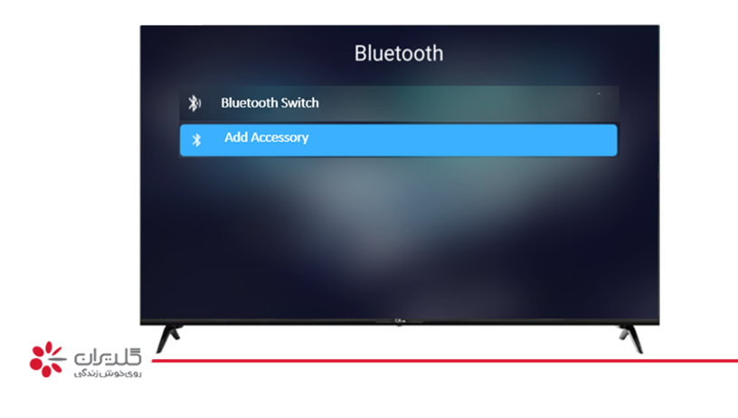 - سپس با انتخاب کلید Setting وارد تنظیمات تلویزیون و قسمت شبکه شوید و گزینهی Bluetooth را انتخاب کنید. در این قسمت افزودن دستگاه جانبی را انتخاب کنید تا شروع به جستجو کند.