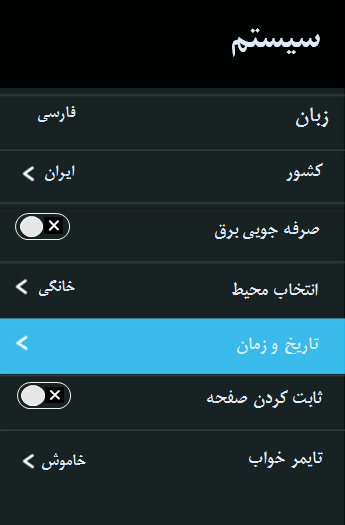 در صورتی که 1 ساعت مغایرت با ساعت رسمی وجود دارد، از قسمت Menu گزینهی «ساعت تابستانی» را تغییر وضعیت دهید.