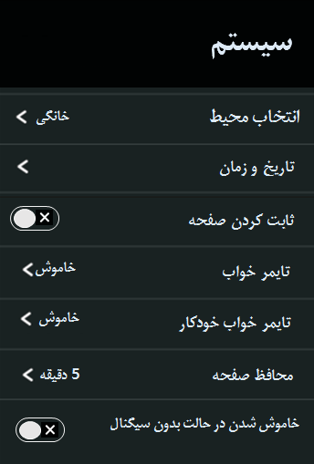 گزینهی «خاموش شدن در حالت بدون سیگنال» نیز باعث میشود زمانی که سیگنالی برای پخش وجود ندارد، تلویزیون خاموش شود.