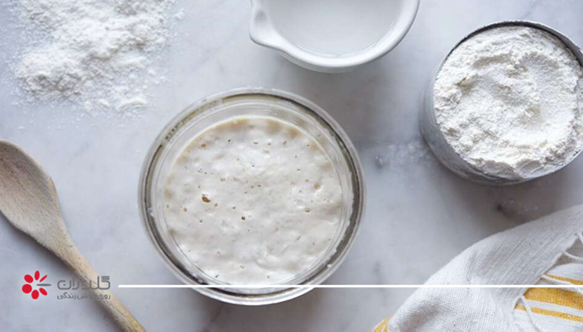 ابتدا میزانی آرد و به همان اندازه آب را با هم ترکیب کنید و آن را به خوبی به هم بزنید. پس از اینکه آب و آرد را با هم ترکیب کردید، بر روی آن یک حولهی نازک و یا یک دستمال قرار دهید و در دمای محیط قرار دهید؛ البته در دمایی که خیلی گرم هم نباشد. پس از آن، روزی دو بار به ظرف خمیرمایه یک یا دو قاشق غذاخوری آب و آرد اضافه کنید. بعد از 3 تا 5 روز بر روی خمیرمایه حباب ایجاد میشود و به این معنی است که خمیر به خوبی پف خواهد کرد.