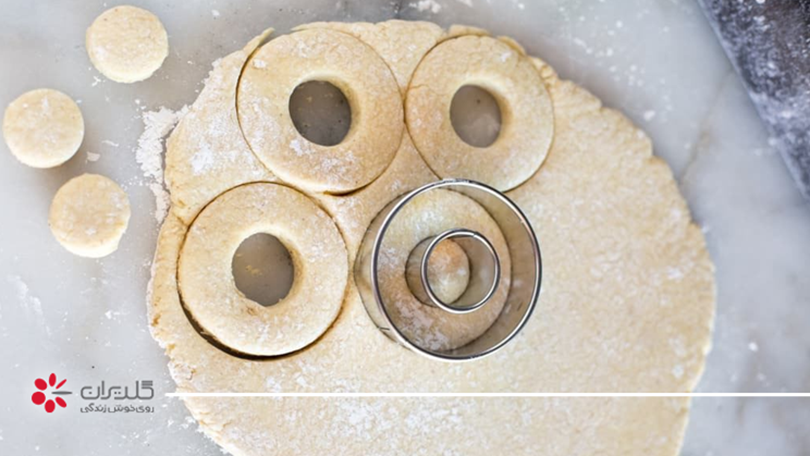 پس از آن با قالب دونات خمیر را قالب بزنید و آنها را روی یک تکه کاغذ روغنی قرار داده و روی آنها پارچهای بیندازید و صبر کنید تا حدود 30 دقیقه به همین وضعیت باقی بماند.