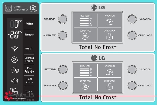 بر روی پنل یخچالهای جی پلاس ممکن است گزینهی Eco و یا Holiday یا همان (Vacation) قرار داشته باشد. در صورتی که این گزینه را انتخاب نمایید دمای یخچال 17 درجه نمایش داده شده و در واقع قسمت یخچال سرمایشی نخواهد داشت. تا زمانی که این گزینه فعال باشد، دمای یخچال قابل تغییر نیست.